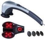 This Double head massager comes with a dual head percussion massager with 3 free massager heads, variable slide speed control with comfortable rubberized grip. Also, it has 1.5 meter long 2 pin power cord, AC 220-240V Input voltage, 50/60 Hz frequency with 20 watt power.